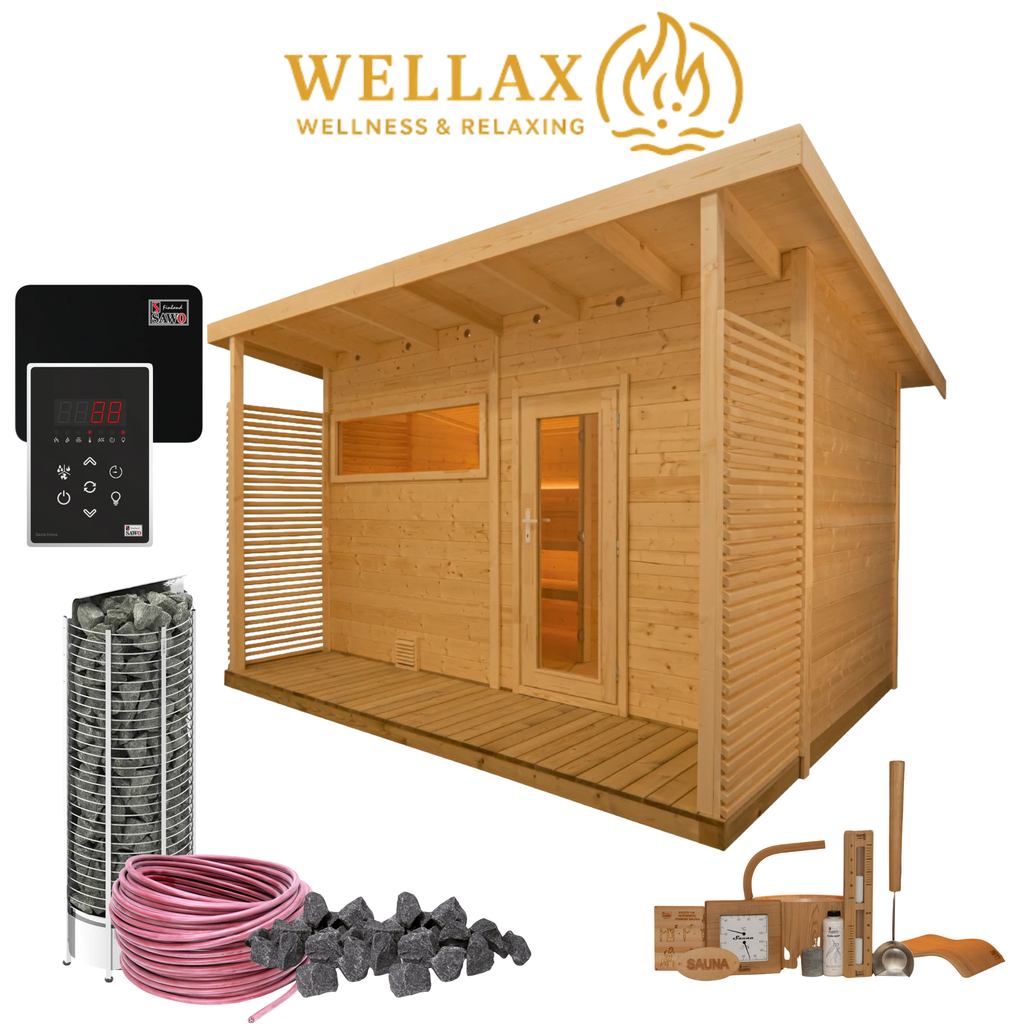De ideale bundel voor wie thuis wil genieten van een volwaardige, luxe buitensauna met maximale controle en comfort.